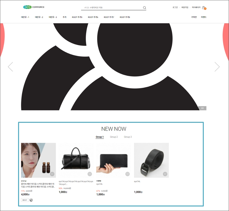 - 신규등록 : '분류명', '분류코트', '사용유무' 기재 및 선택 후 [저장] 버튼을 클릭하면 전시분류 신규 등록이 되며,