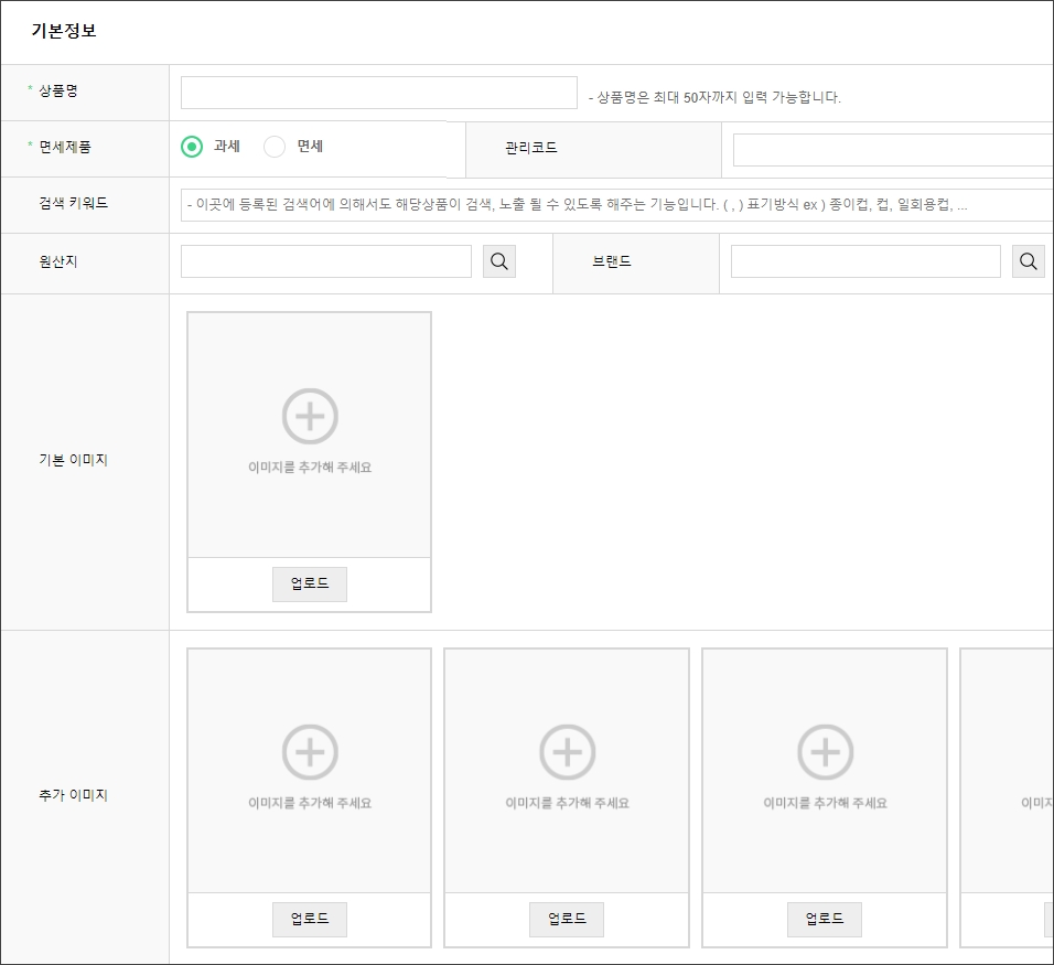 - 추가이미지 : 상품상세에 노출되는 이미지를 등록하는 영역입니다.